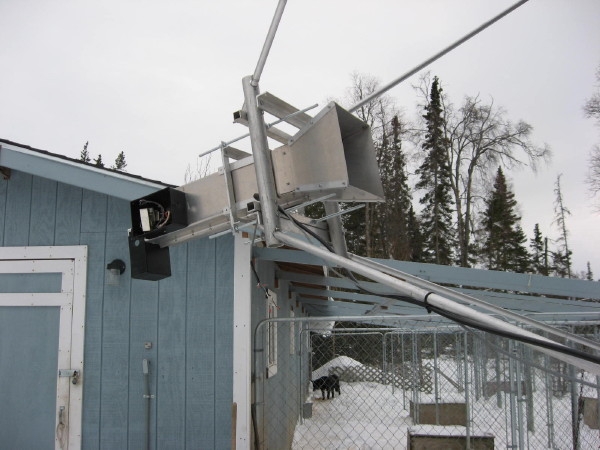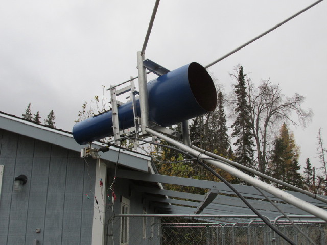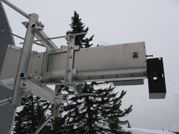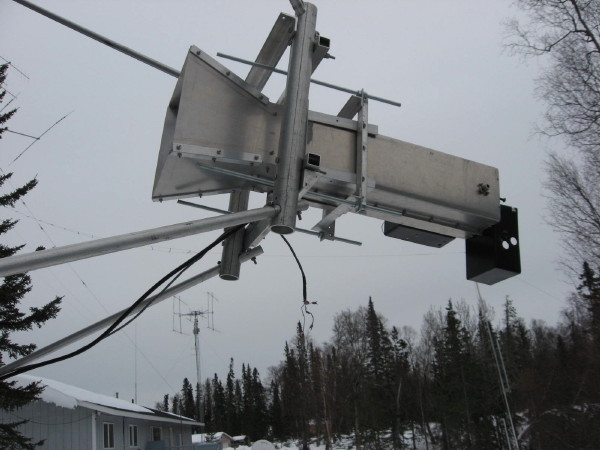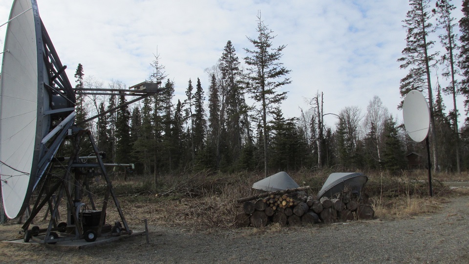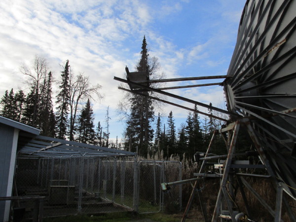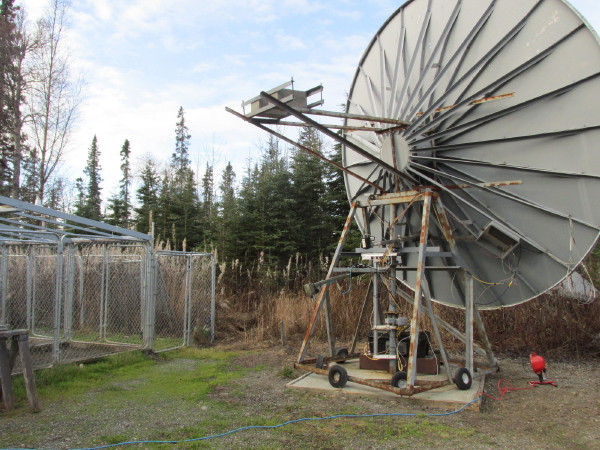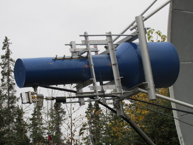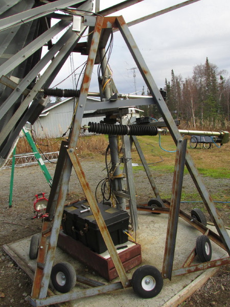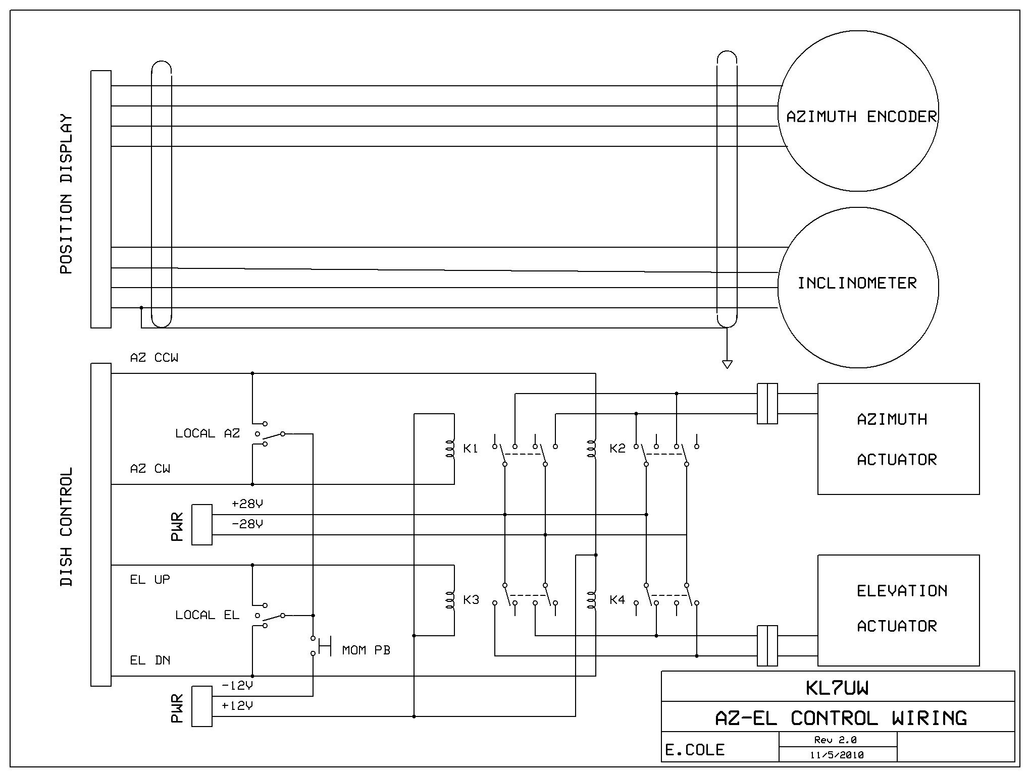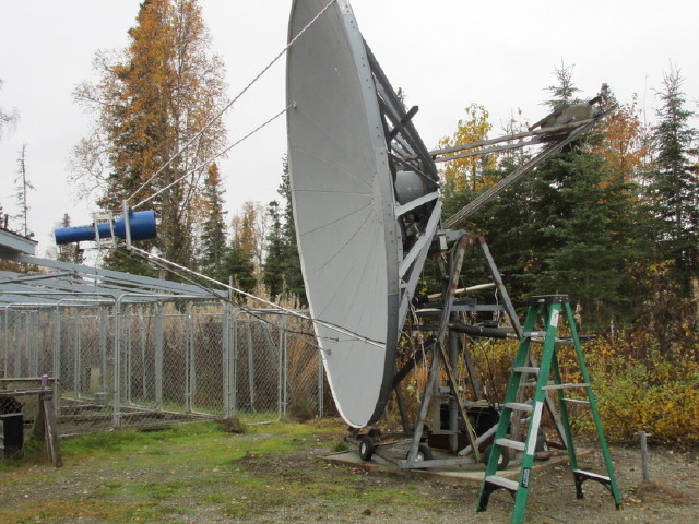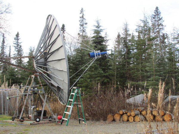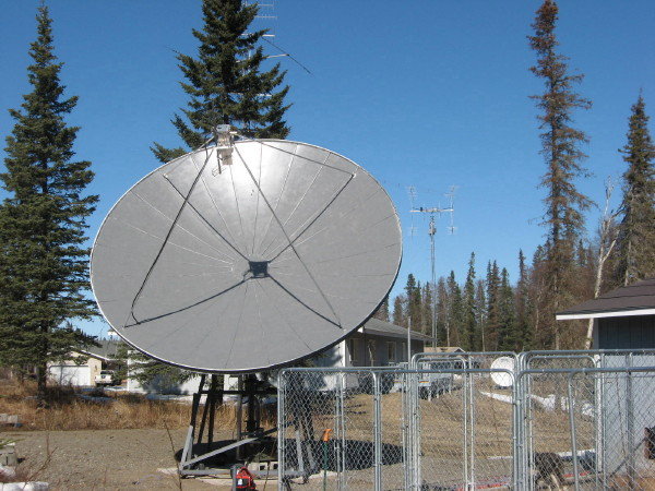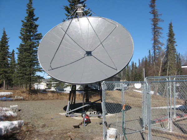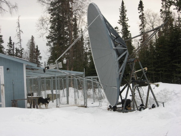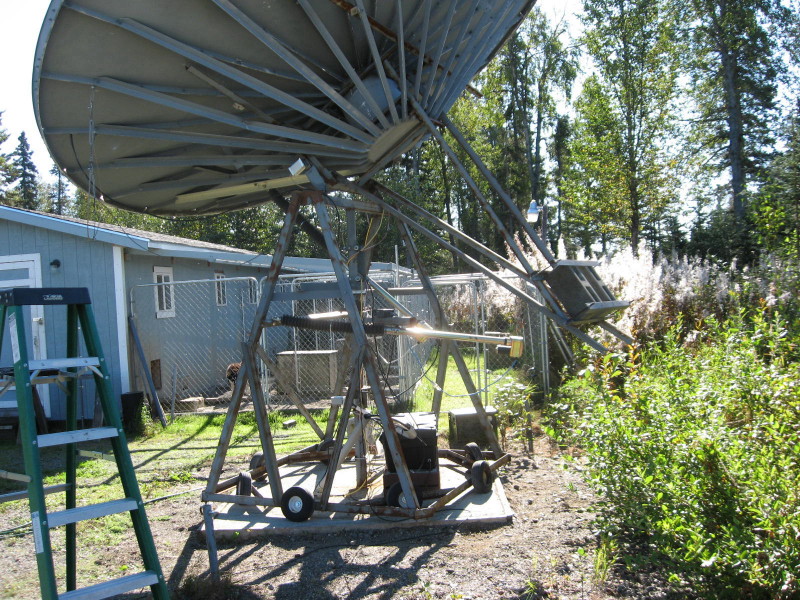 The dish mount permits az-movement in three stages: 080-156, 156-245, and 245-310 degrees (recently re-programmed).