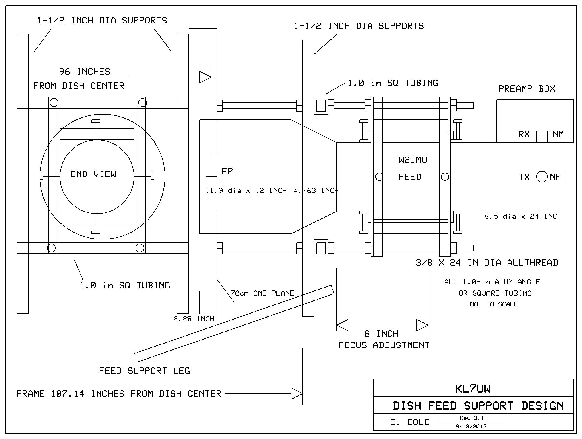 I have 50w running at the dish. I am in the progress of revising the design of the Feed mount structure (completed Oct. 2nd):