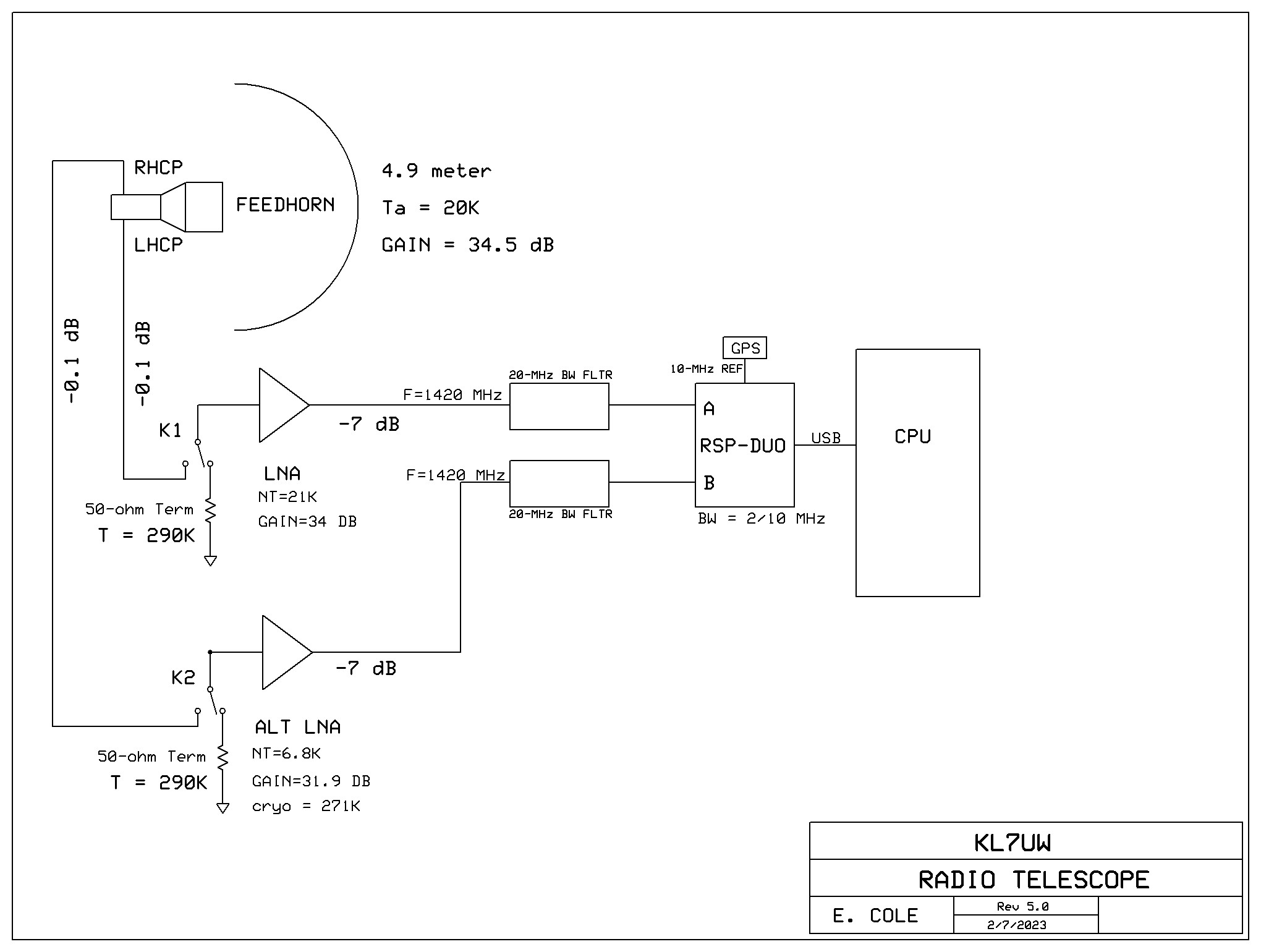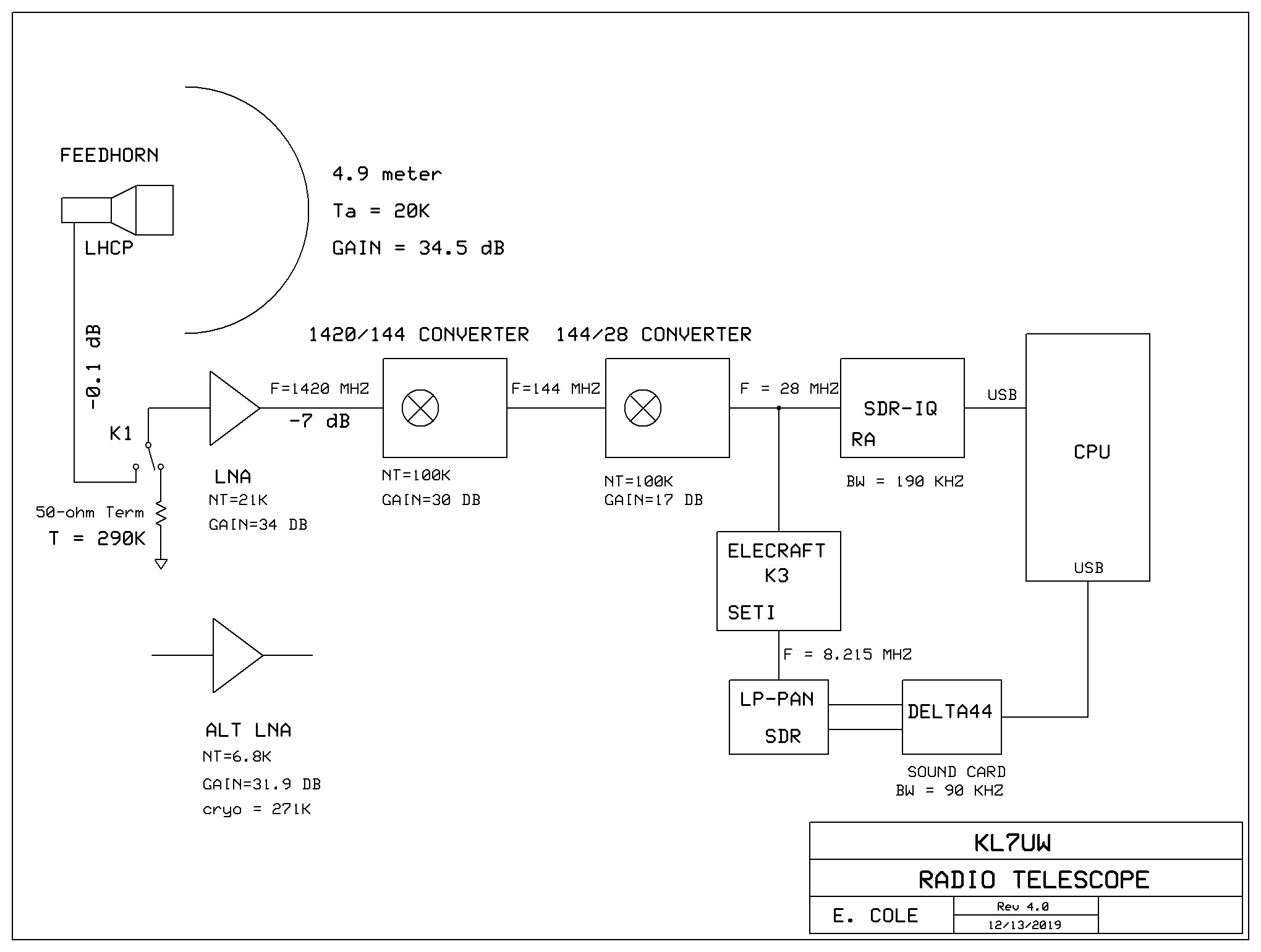 LNA: VLNA (G4DDK) NF=0.24 dB, Gain=34 dB