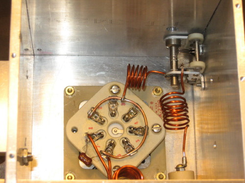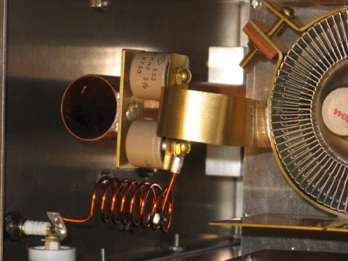 - Close up of HV RF Choke, bypass cap. and MHV connector.
