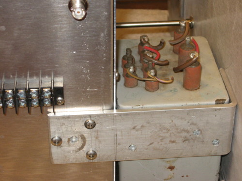 - Inside view shows -HV to ground resistors and surge diodes on the insulated bleeder bracket.