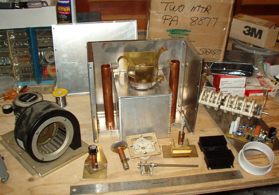 This page describes the construction of a 1500-watt 2m amplifier using an 8877. The design follows the classic W6PO design which is described in the Eimac Notes. I am using the Triode Board built by G3SEK (2023 appears no longer avaialble). I purchased the Plate lines and output tuning capacitors as a kit from Harry, WA4OFS(sk). Here are some photos of the amplifier under construction: (click to see larger image)
