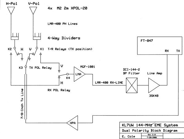 Prior 144-MHz EME Station Block diagram that had H/V switching.