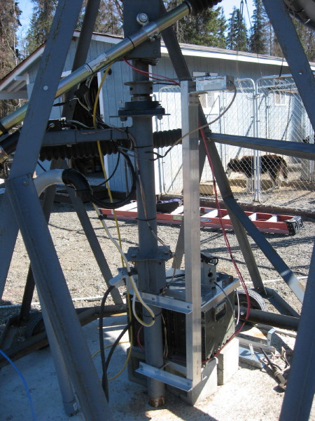 azimuth actuator driving the cross-brace which is held to the center axis by a 4-inch clamp so only circular movement