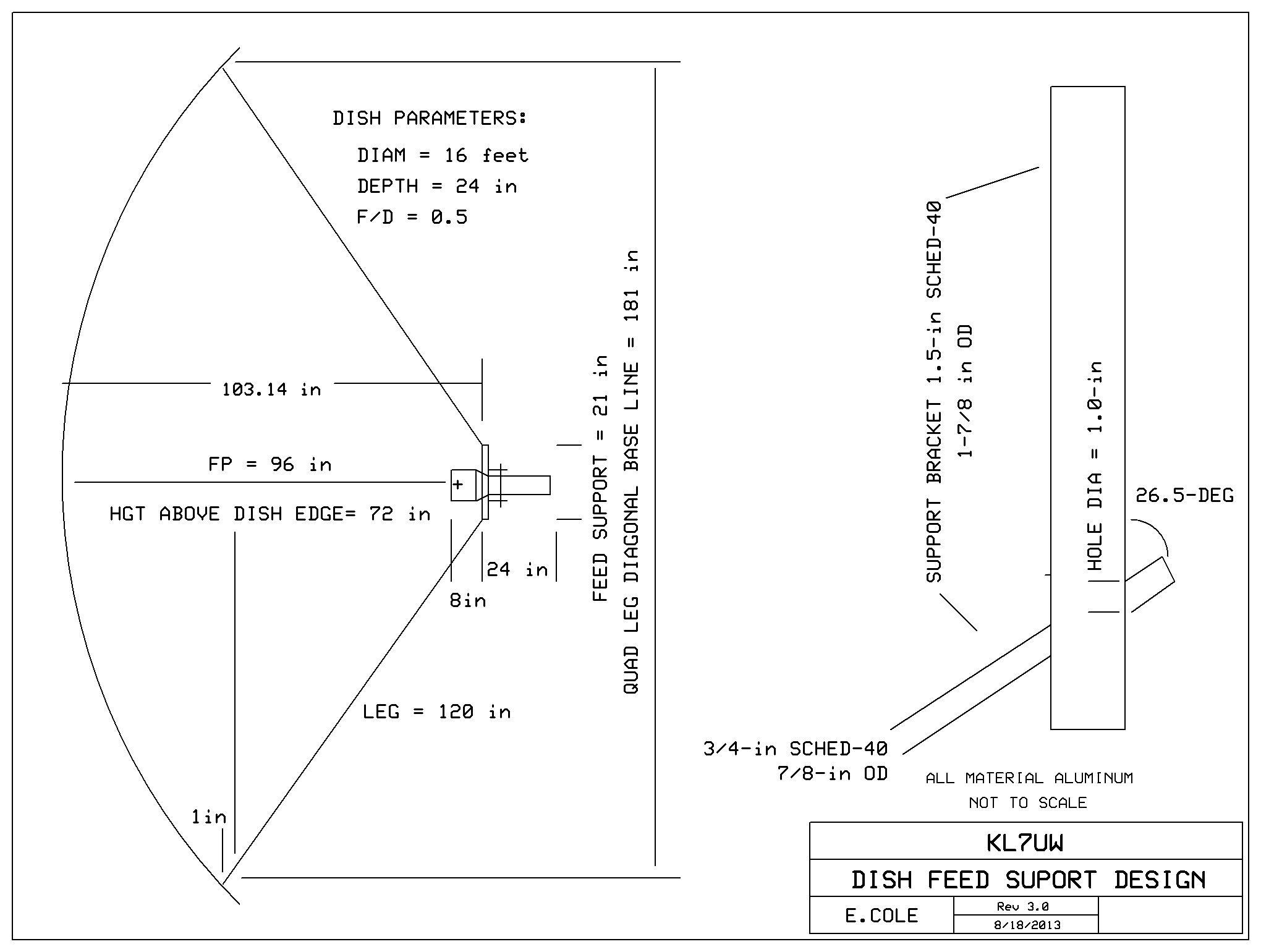 I have 50w running at the dish. I am in the progress of revising the design of the Feed mount structure (completed Oct. 2nd):