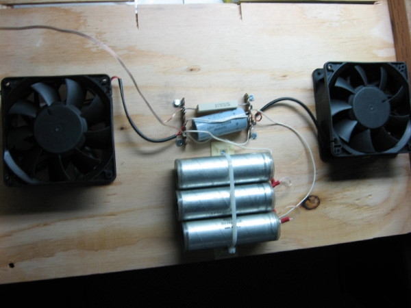 Interior of box showing auxiliary 12v PS and two fans in the floor.
