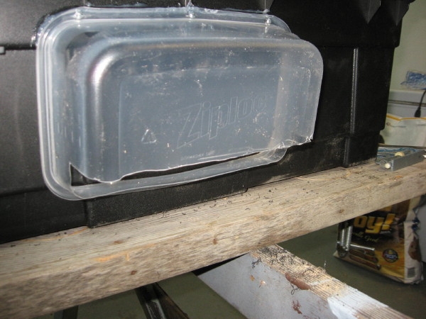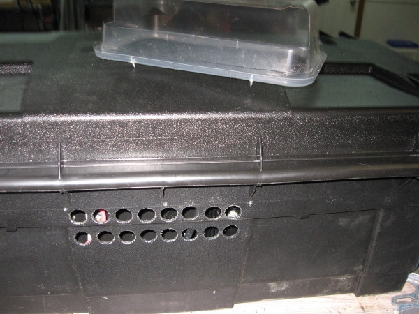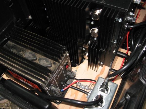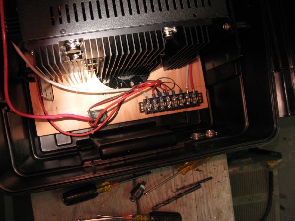 Top view of the power supply box (converted truck bed tool box) with Astron PS.
