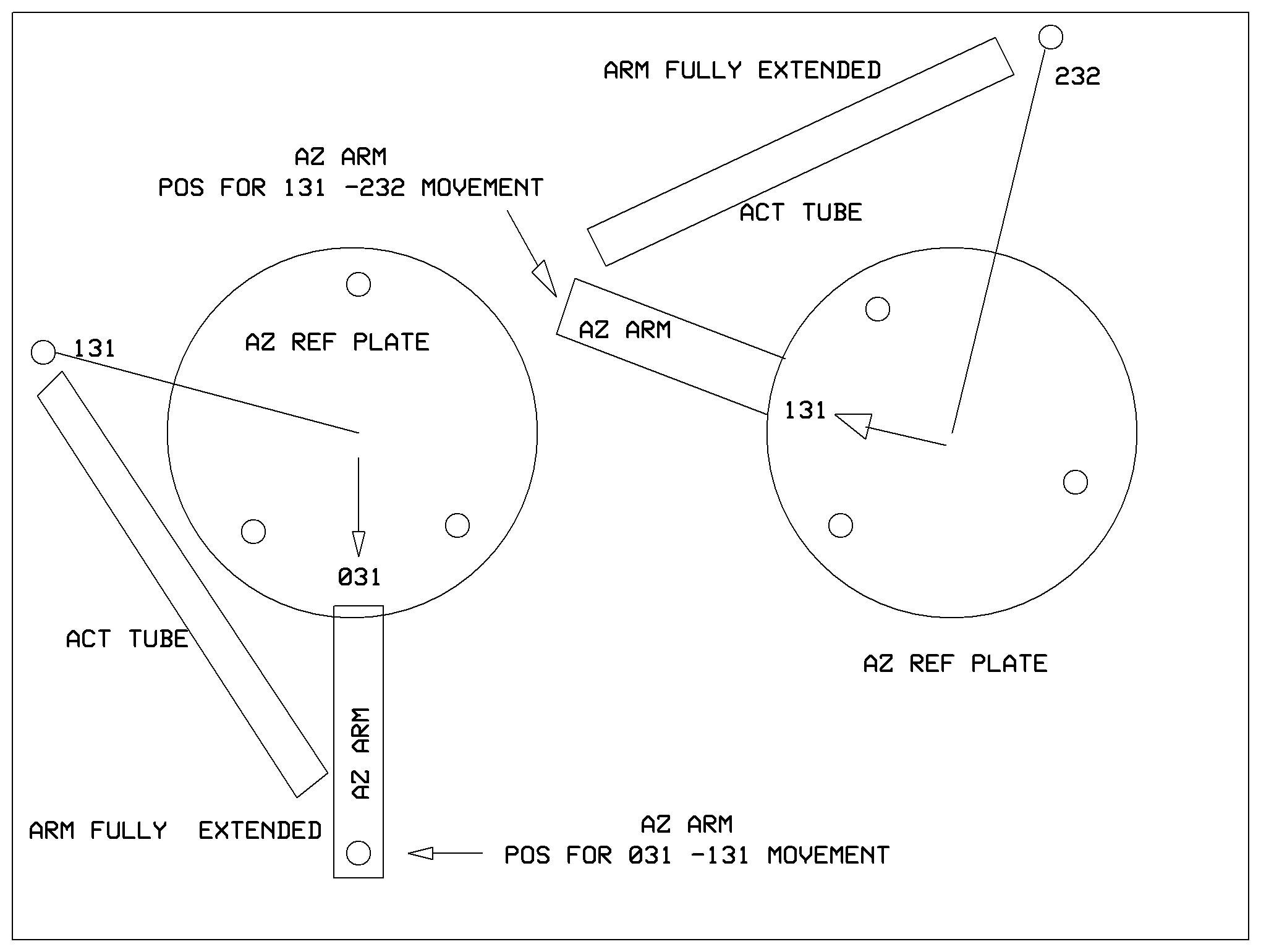First photo shows the pre-existing setup where the azimuth actuator pushes on the A-frame carriage structure