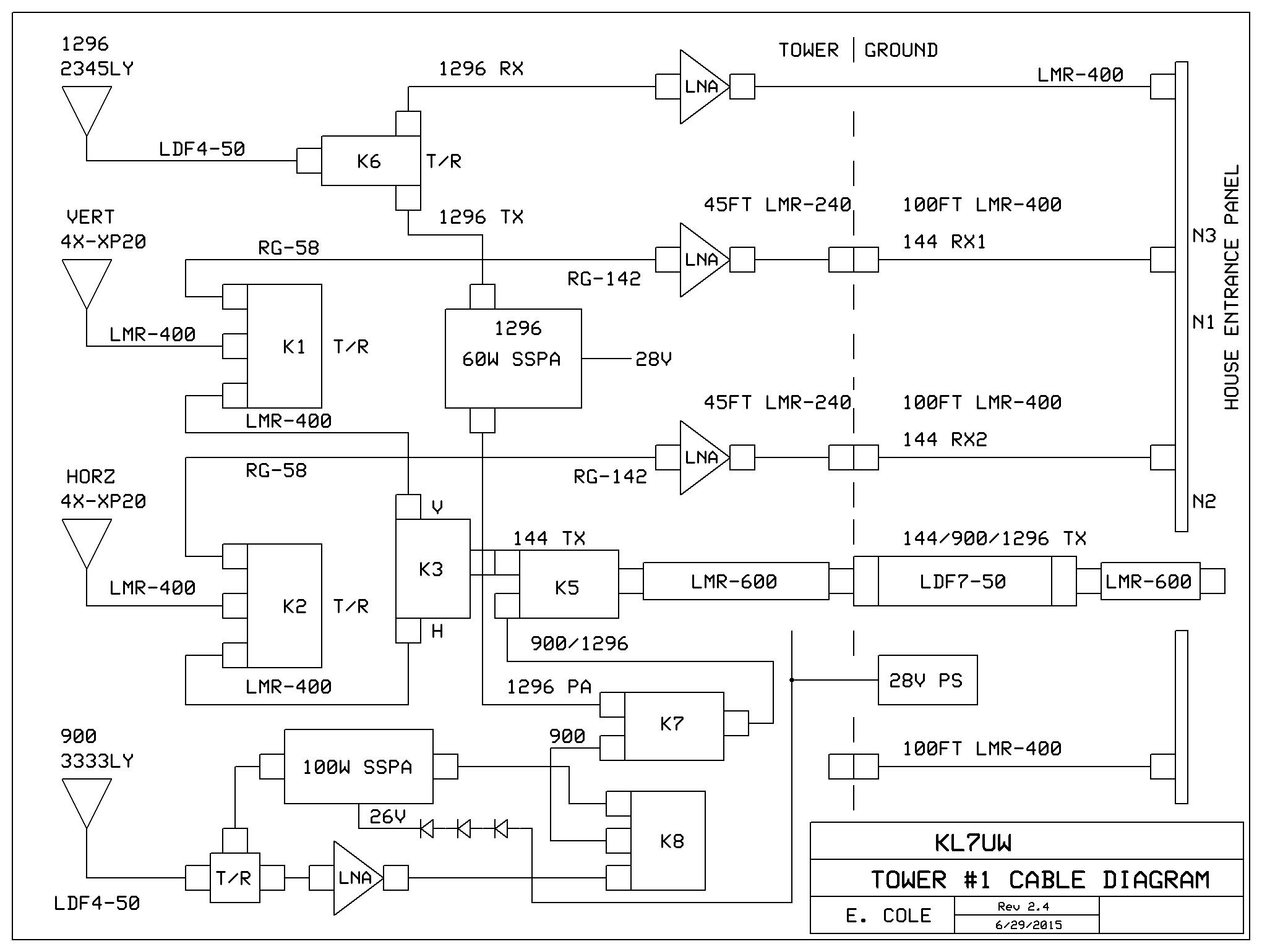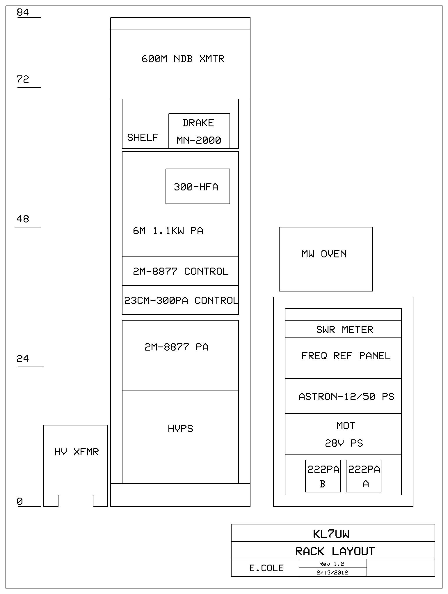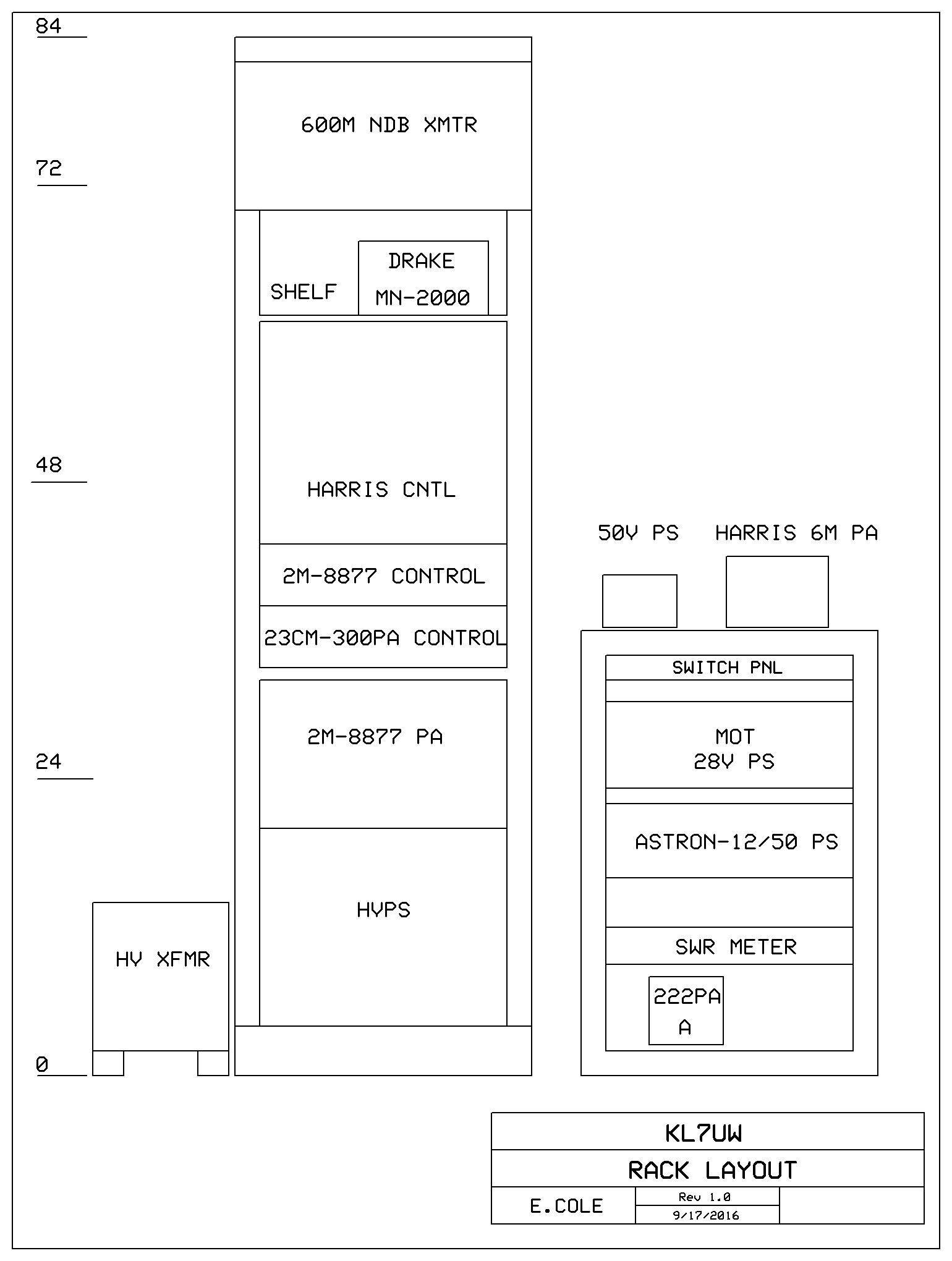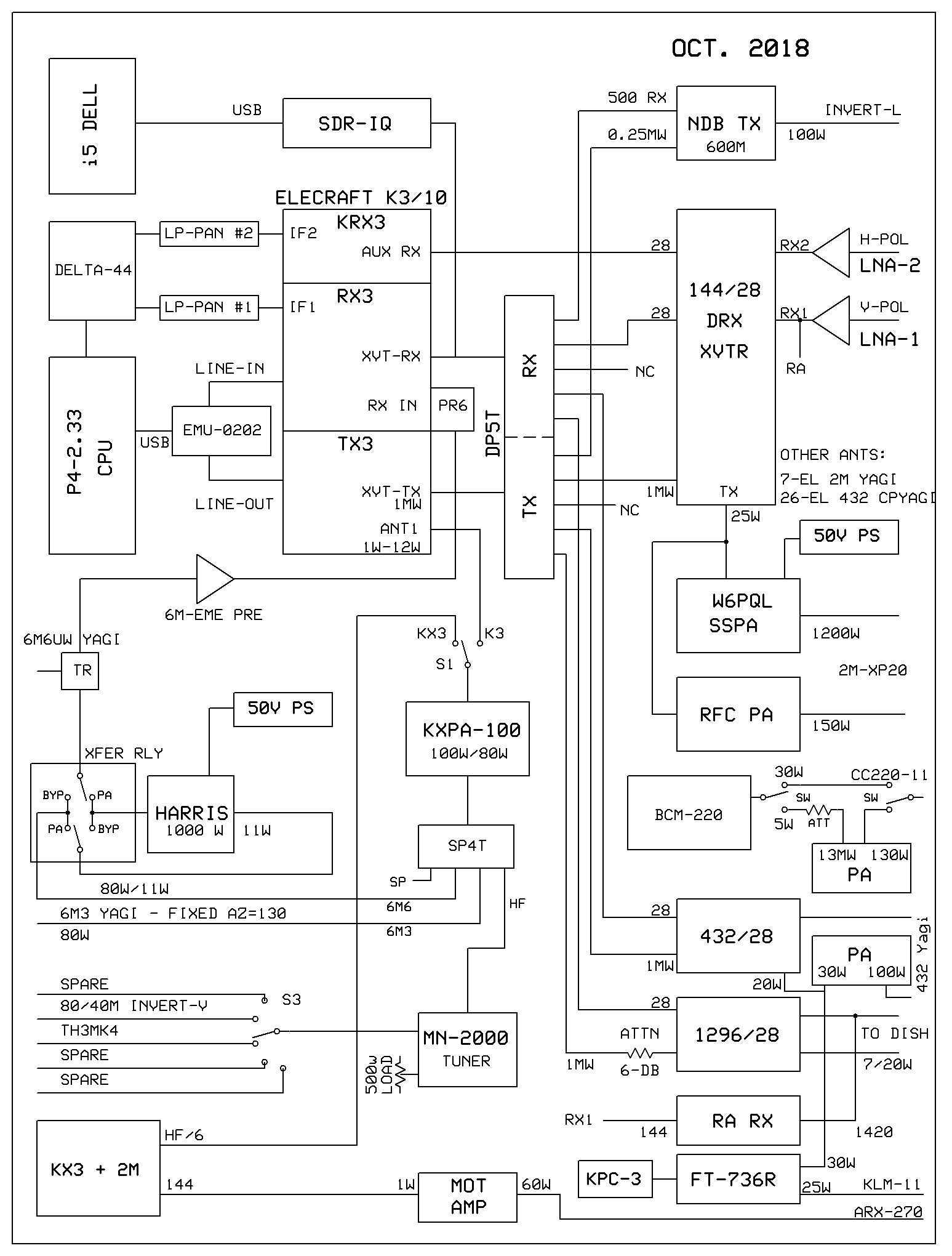 2025 Station Photos in new Hamshack (to be shown here). 2025 Station Block Diagram and Proposed Station, Rack Layout with 222 Remote Equipment Enclosure: